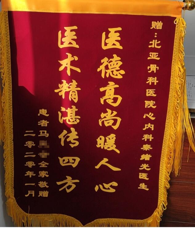 患者马XX,赠送心内科秦绪光主任一面锦旗。