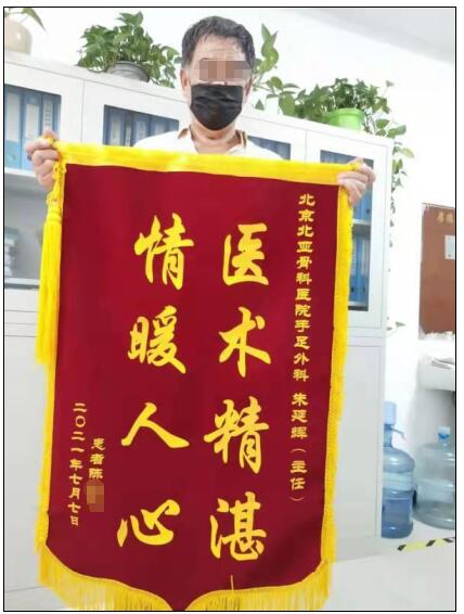 患者陈XX,赠送手足外科朱延辉主任锦旗一面。