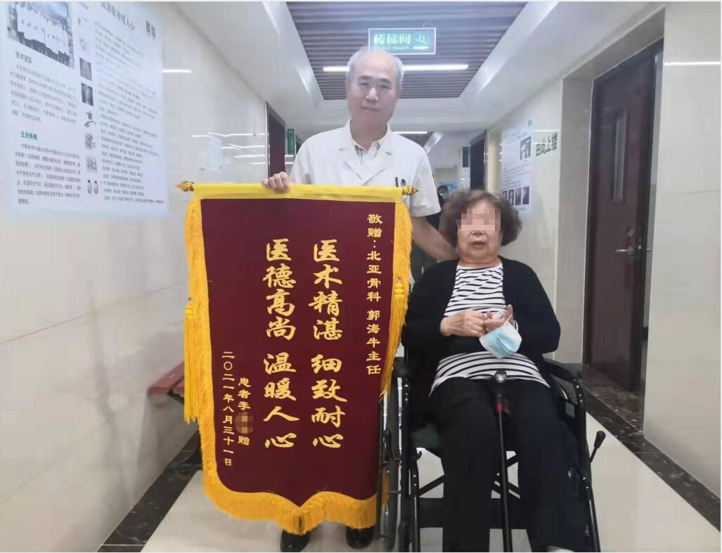 患者李XX赠送中医骨伤科郭海牛锦旗一面。