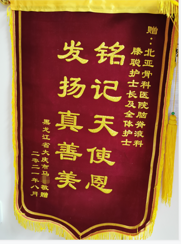 患者马XX,赠送十病区护士长滕聪及全体护士锦旗一面。